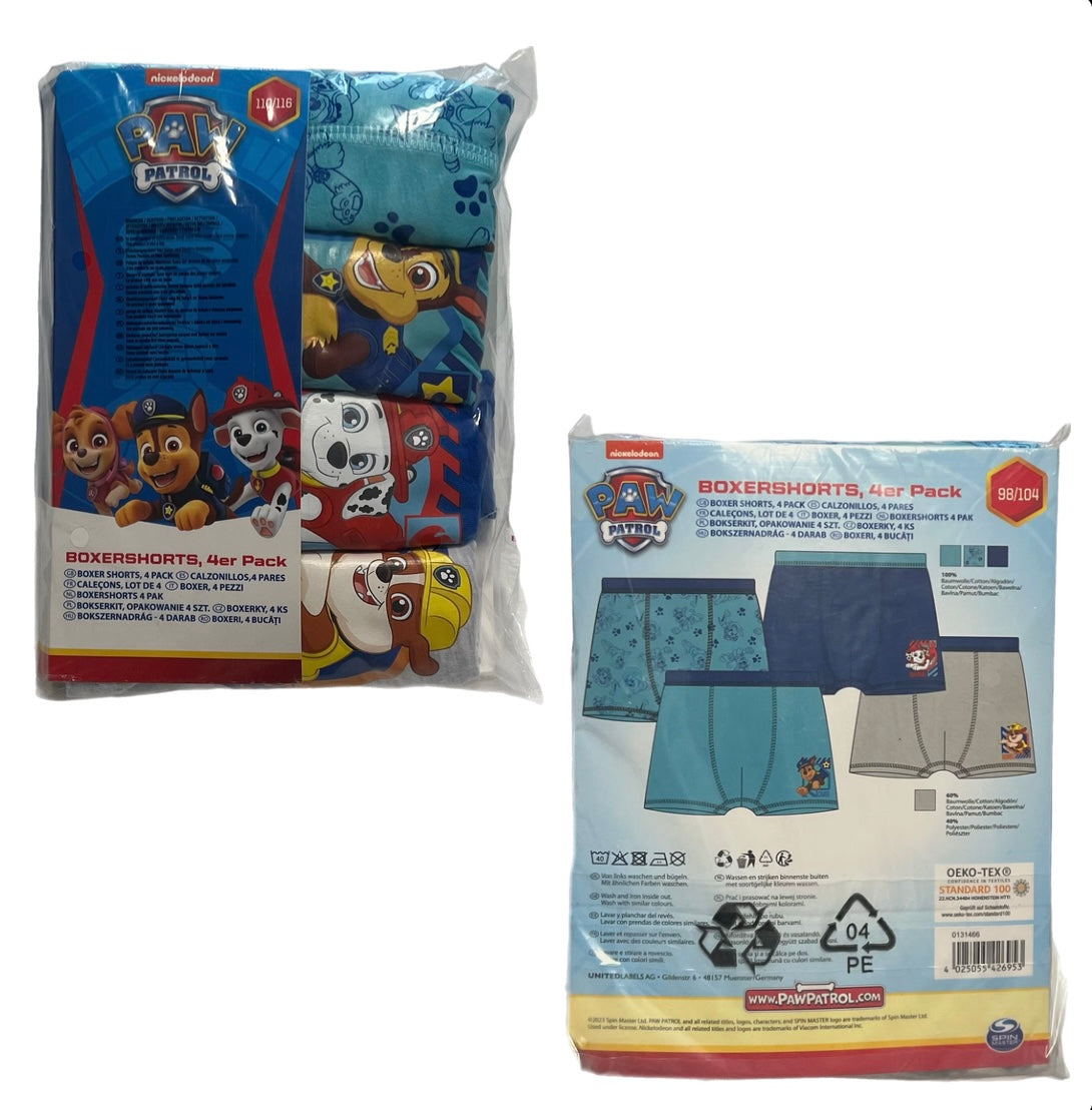 Mit diesen farbenfrohen Boxershorts aus der Paw Patrol Kollektion von Nickelodeon sind die kleinen Fans der beliebten Helden bestens ausgestattet. Diese Unterhosen bieten nicht nur optimalen Tragekomfort, sondern auch einen hohen Wiedererkennungswert durch die lebendigen Motive. Im praktischen 4er Pack passen sie ideal in den Alltag von Jungen und überzeugen durch ihre hochwertige Verarbeitung. Ein Muss für jeden Nachwuchs, der gerne seine Lieblingscharaktere bei sich trägt.